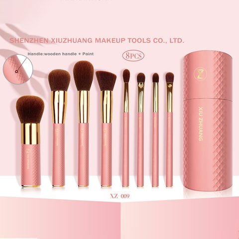 Özel 8 adet pembe makyaj fırçası seti kova yumuşak yüksek kalite toptan pembe kozmetik durumda makyaj fırçalar