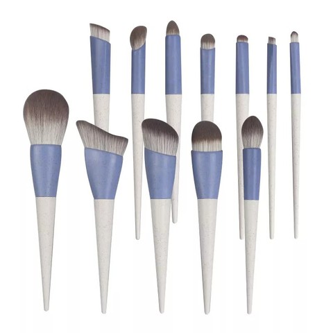 Taşınabilir 12 adet mavi makyaj fırçası set yumuşak saç özel logo makyaj fırça seti