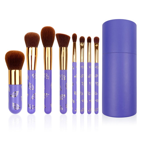 8 adet mor makyaj fırçalar lüks baskı işlemi taşınabilir çanta ile 8 adet makyaj fırçası set