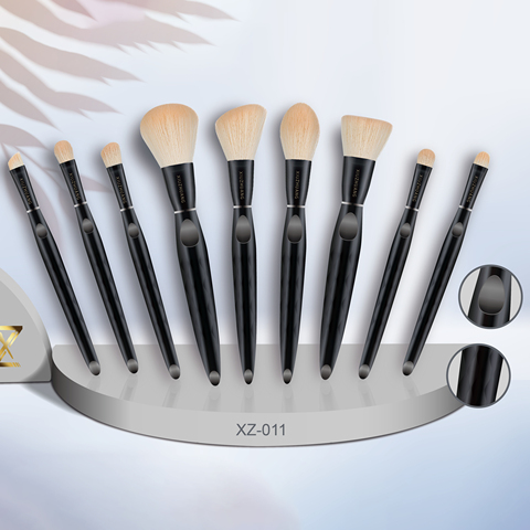 Özel kolu özel etiket kendi yapmak 9 adet siyah makyaj fırçası Set yumuşak yüksek kaliteli makyaj fırçalar